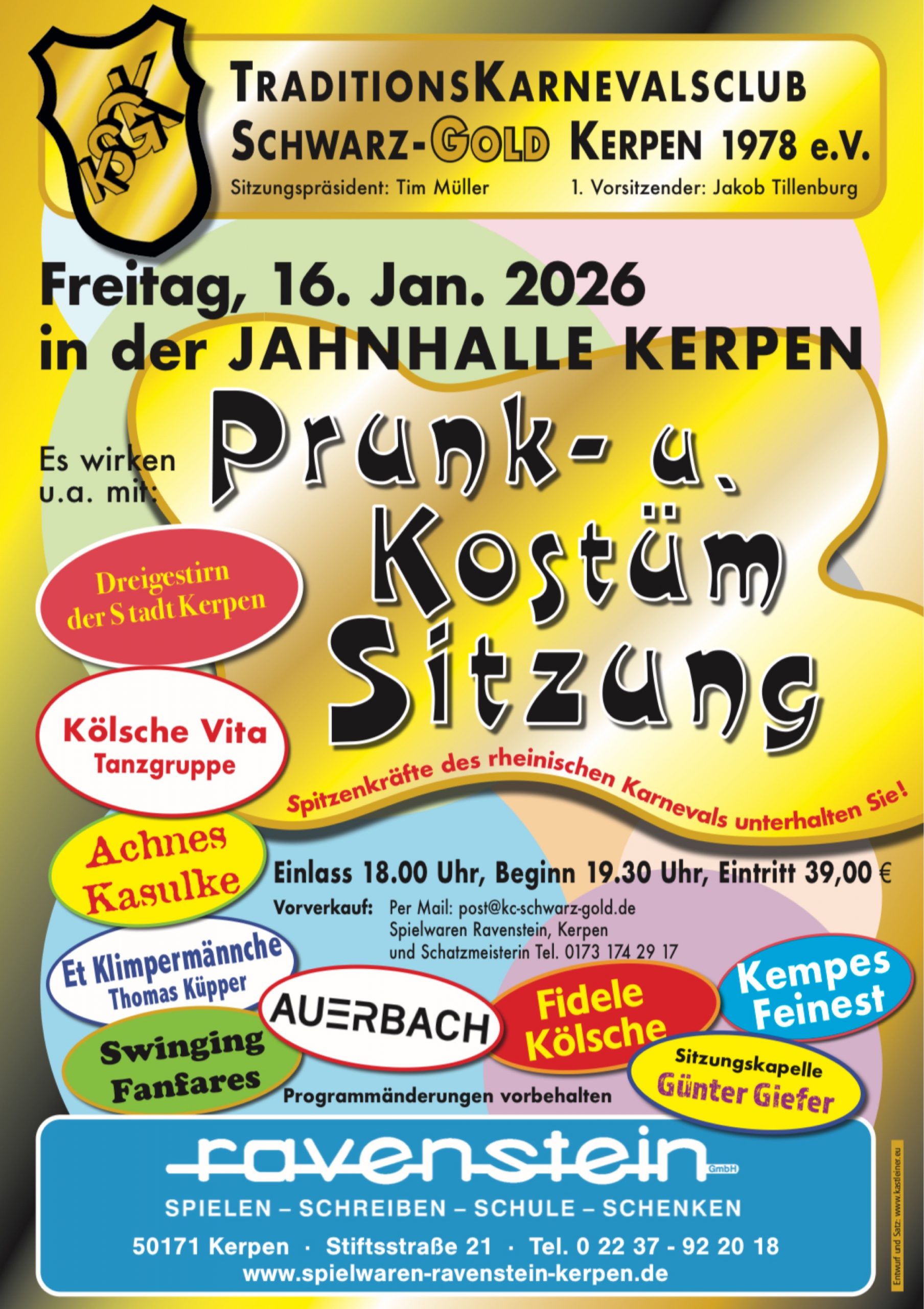 « Alle Veranstaltungen Prunk- und Kostümsitzung 2026 16. Januar 2026 @ 18:00 CET « Ordensappell 2025 Herrensitzung 2026 » Zum Kalender hinzufügen Google Kalender iCalendar Outlook 365 Outlook Live Details Datum: 16. Januar 2026 Zeit: 18:00 CET Veranstalter KC Schwarz Gold Kerpen Veranstaltungsort Jahnhalle Kerpen Jahnplatz 1 Kerpen, 50171 Deutschland Google Karte anzeigen 0 Kommentare Schreibe einen Kommentar Antwort abbrechenDeine E-Mail-Adresse wird nicht veröffentlicht. Erforderliche Felder sind mit * markiert Name * E-Mail * Website Was beschäftigt dich? Meinen Namen, meine E-Mail-Adresse und meine Website in diesem Browser für die nächste Kommentierung speichern.